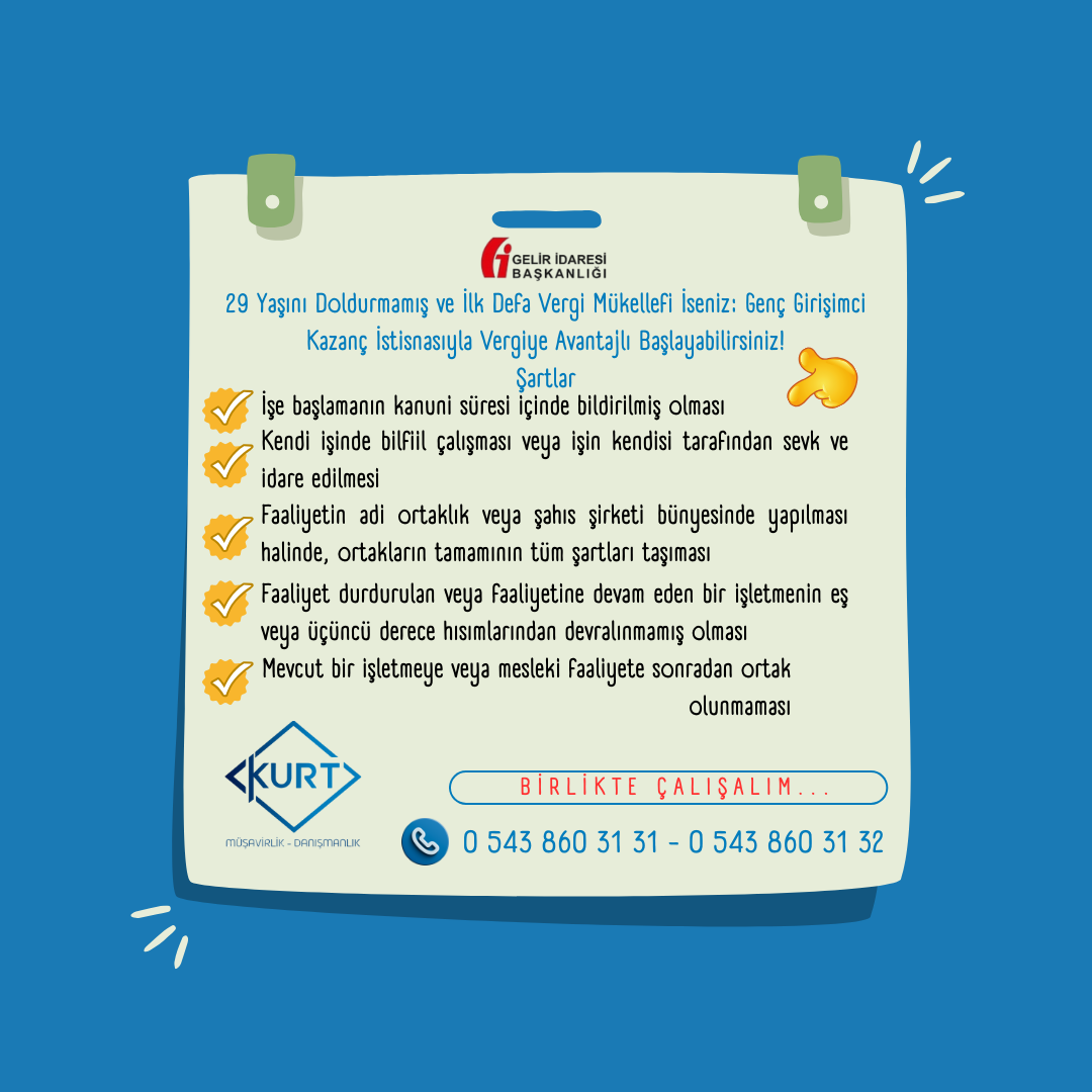 İlk defa vergi mükellefi iseniz; genç girişimci kazanç istisnasıyla...başlayabilirsiniz!