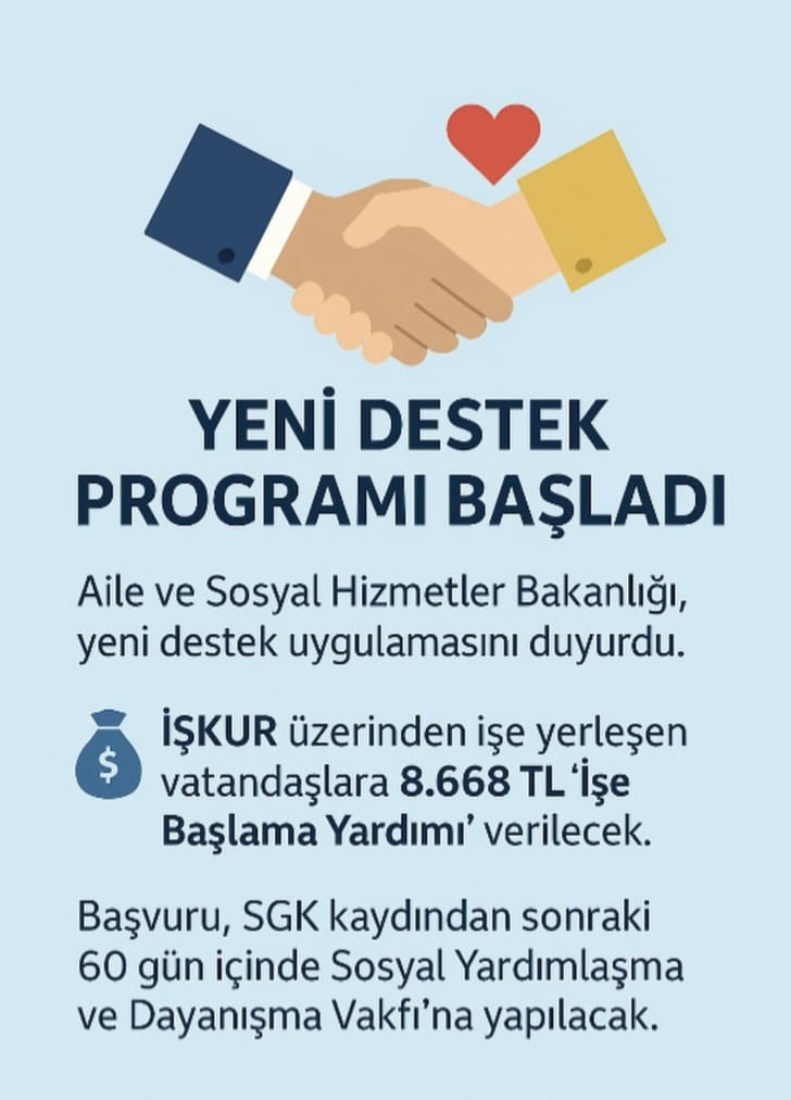 8.668 ₺ İşe başlama yardımı destek programı...!