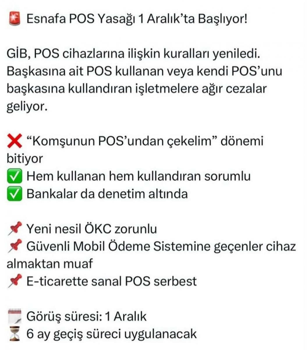 Esnafa POS yasağı 1 Aralık'ta başlıyor ⚠️